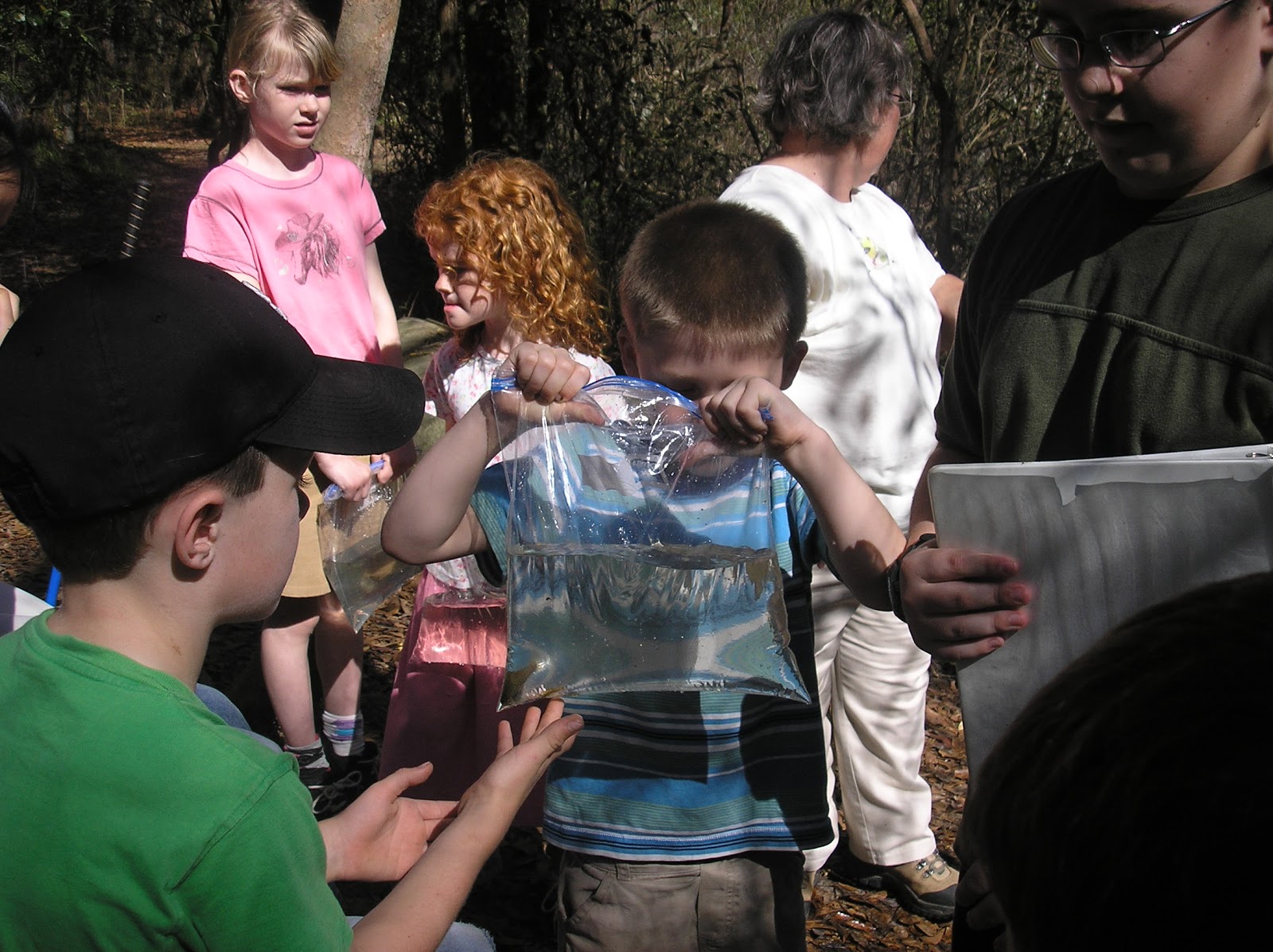 Today, Collin and I went to went to the Savannah River Ecology Conference Center. It was tons of fun! We arrived at 9:30. The first hour was explaining the different habitats and traps we would be checking and how to act around them. Then, we were split up into groups. I was in a group with another mom and four boys (including Collin), they were 6,6,7&9. It was a fun group. ;) Here's a shot of our group.... Collin's on the far right and the boy next to him quickly became Collin's best friend. LOL! They had fun together.